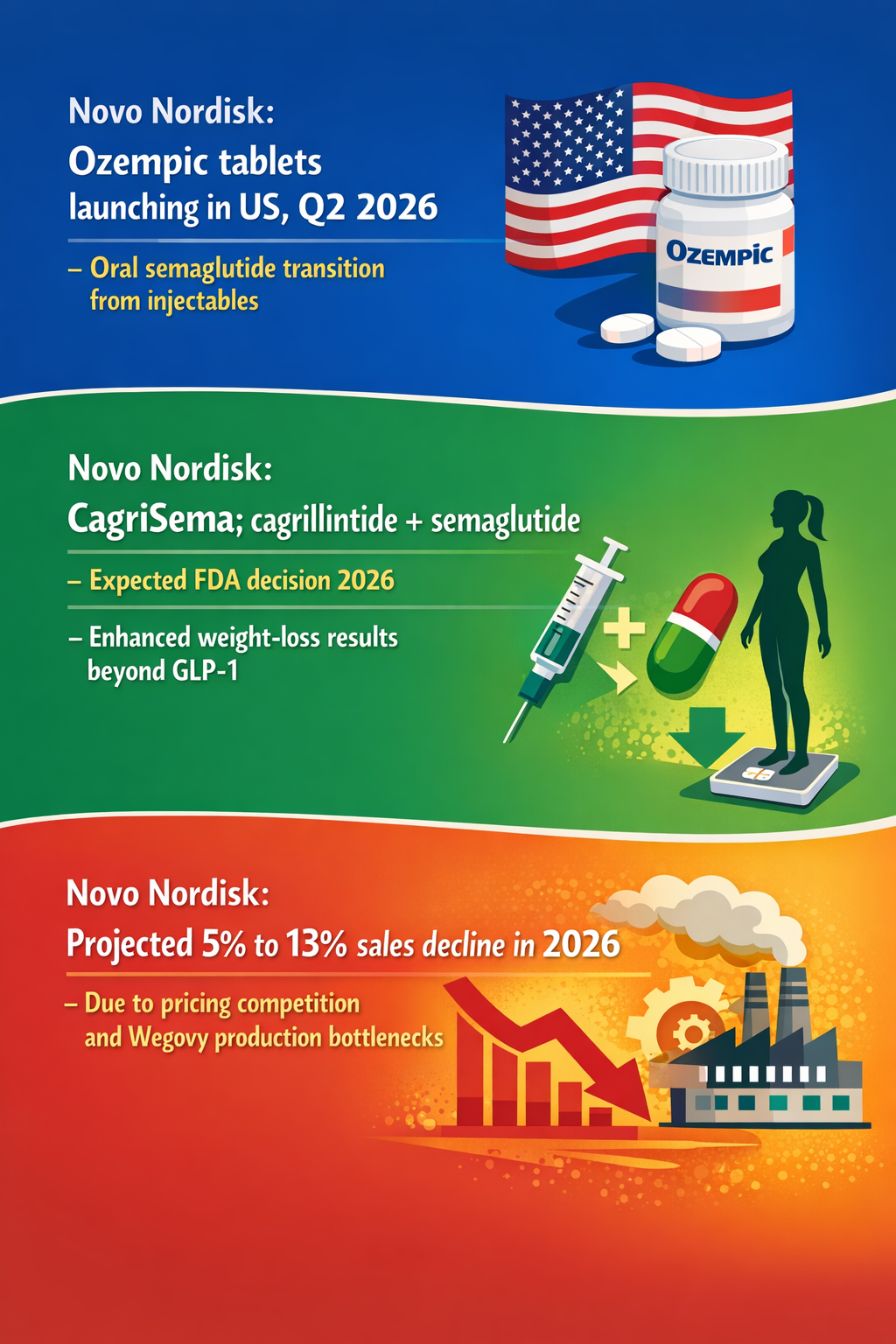 - DrugDiscoveryNews 2026. “At the product level, Lilly's tirzepatide-based therapies are projected to deliver the largest incremental sales gains in 2026, while Novo's semaglutide faces mounting pressure…”