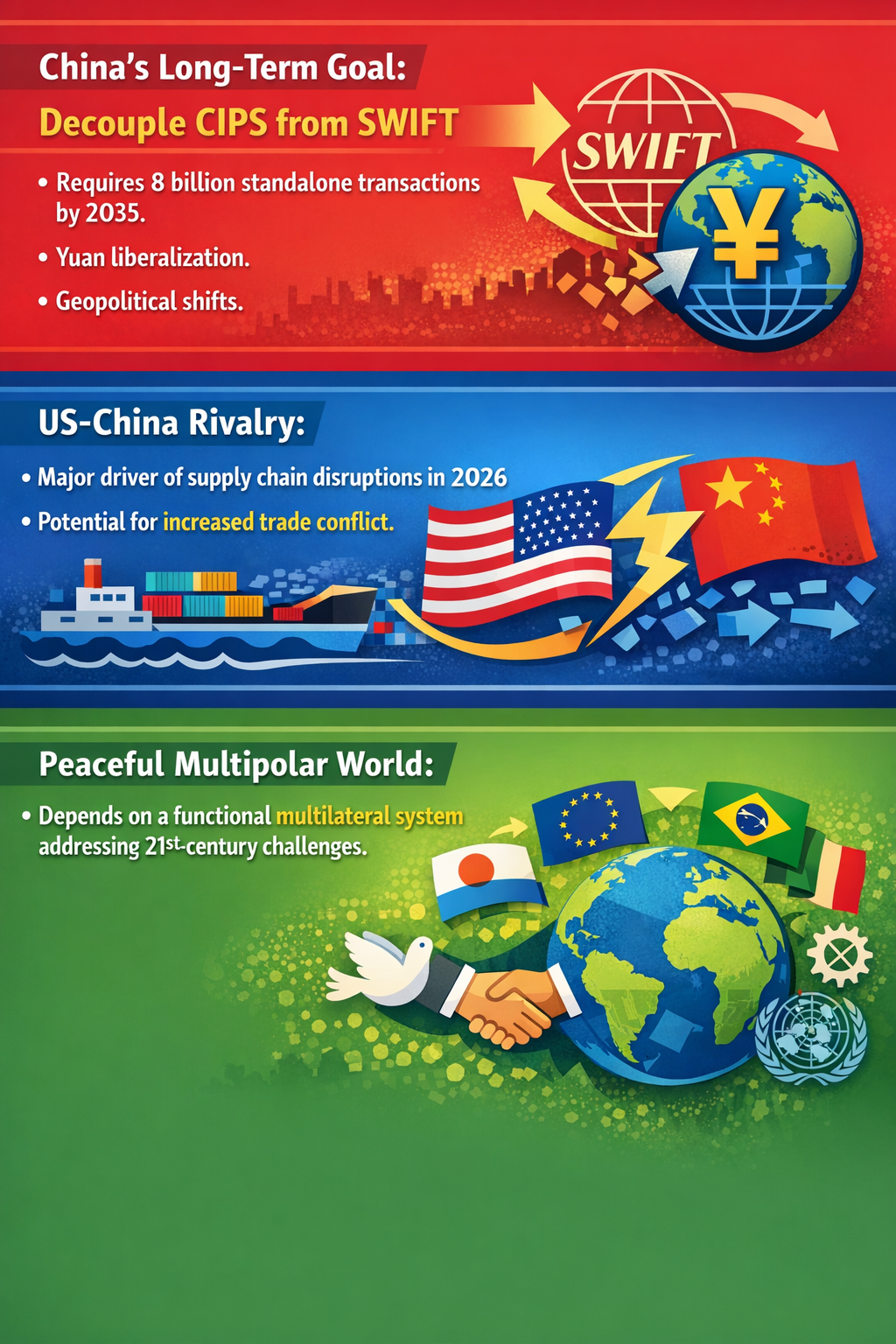 Multipolar World; BRICS; Global South; US-China Rivalry; Supply Chain Disruption; Alternative Financial Institutions; Geopolitical Strategy; Emerging Markets; International Trade; Nuclear Deterrence