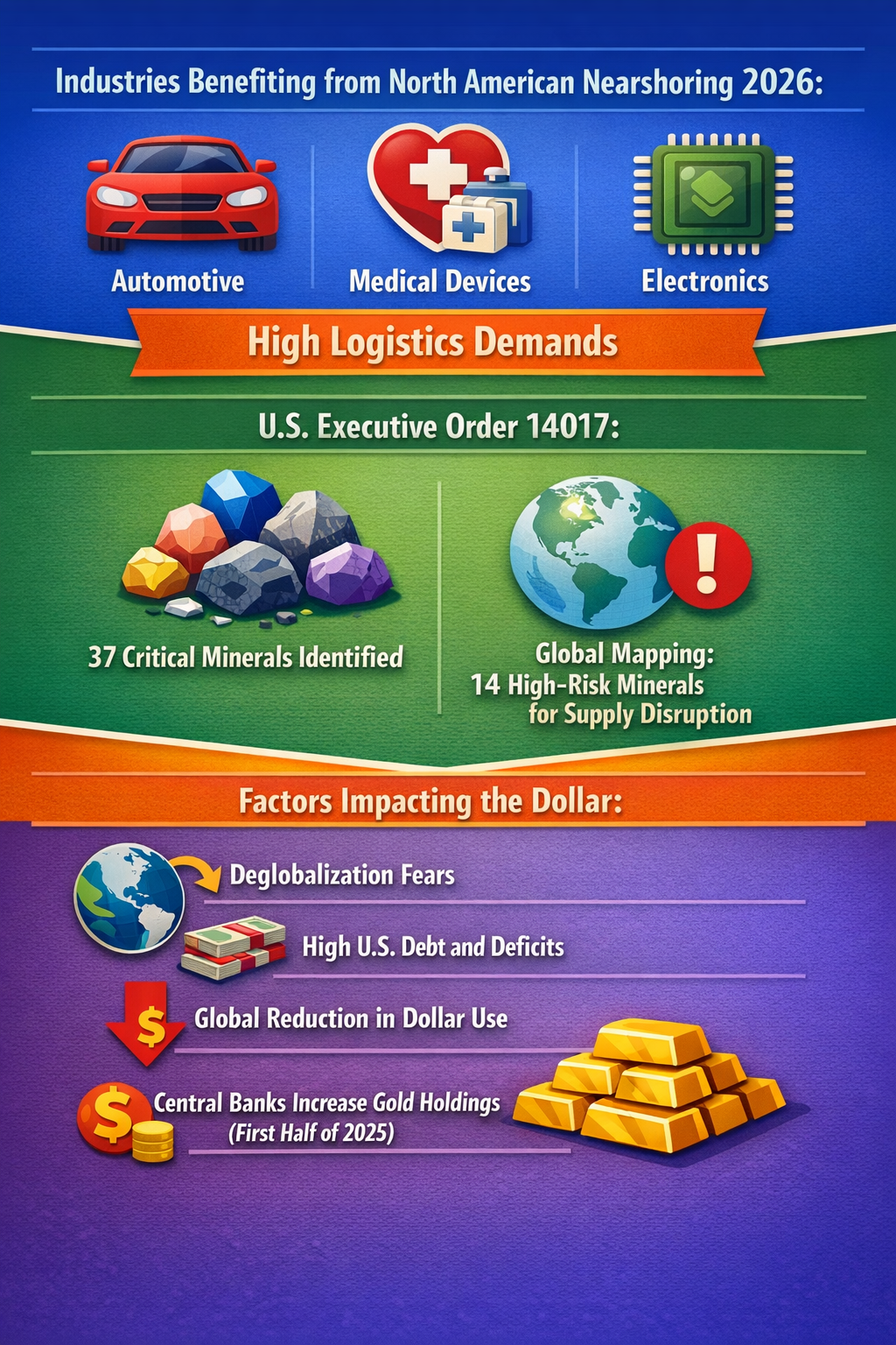 nearshoring; supply chain resilience; logistics ecosystems; automation; digital infrastructure; regional manufacturing; critical minerals; supply chain antifragility