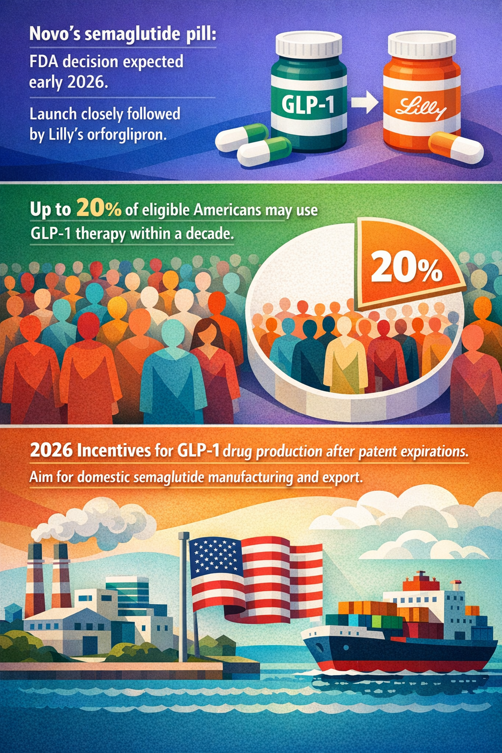 On the production side, Novo Nordisk has begun manufacturing the oral Wegovy pill domestically in the US, indicating strategic moves towards local and scalable supply chains (PR Newswire 2025). Additionally, governments are exploring incentives to expand domestic production of GLP-1 drugs post-2026, targeting export markets and reducing dependency on global supply chains (Intuition Labs on manufacturing incentives).